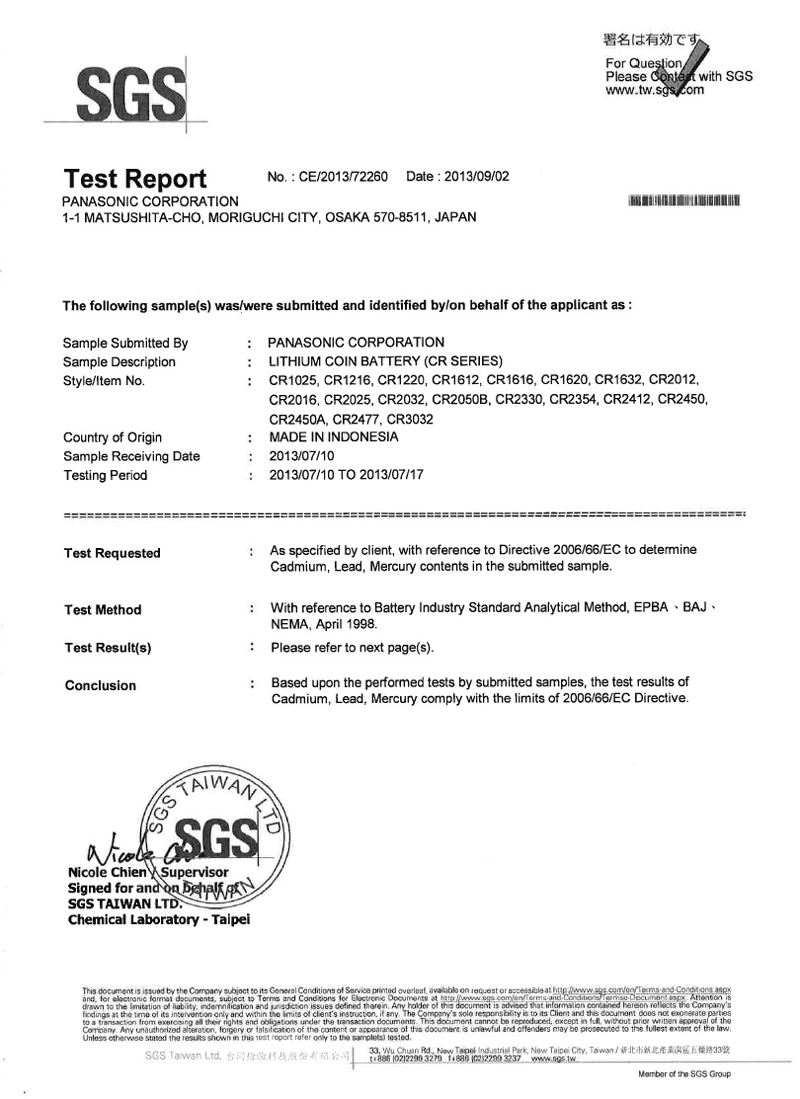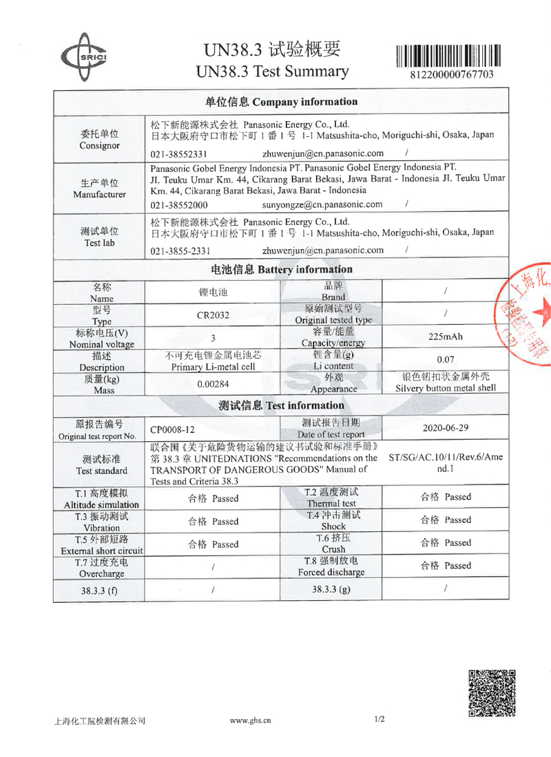 • 松下紐扣電池出口需要哪些報告
