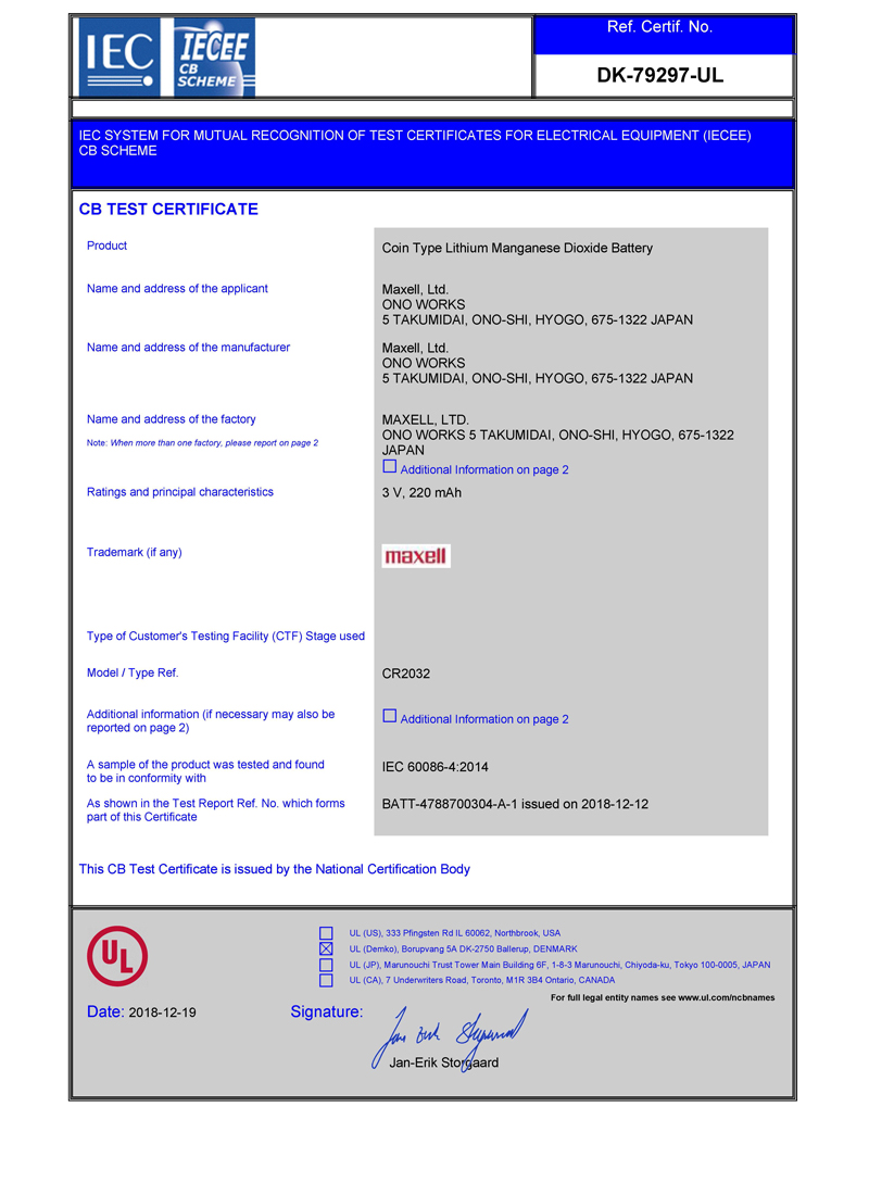 • Maxell/麥克賽爾: 耐熱紐扣型鉀二氧化錳電池“CR” 耐熱紐扣型鯉二氧化錳電池“CR” 紐扣型二氧化電池“CR” 堿性電池“LR” 硬幣型二次電池“ML”